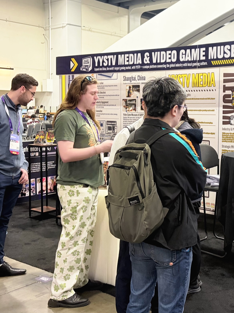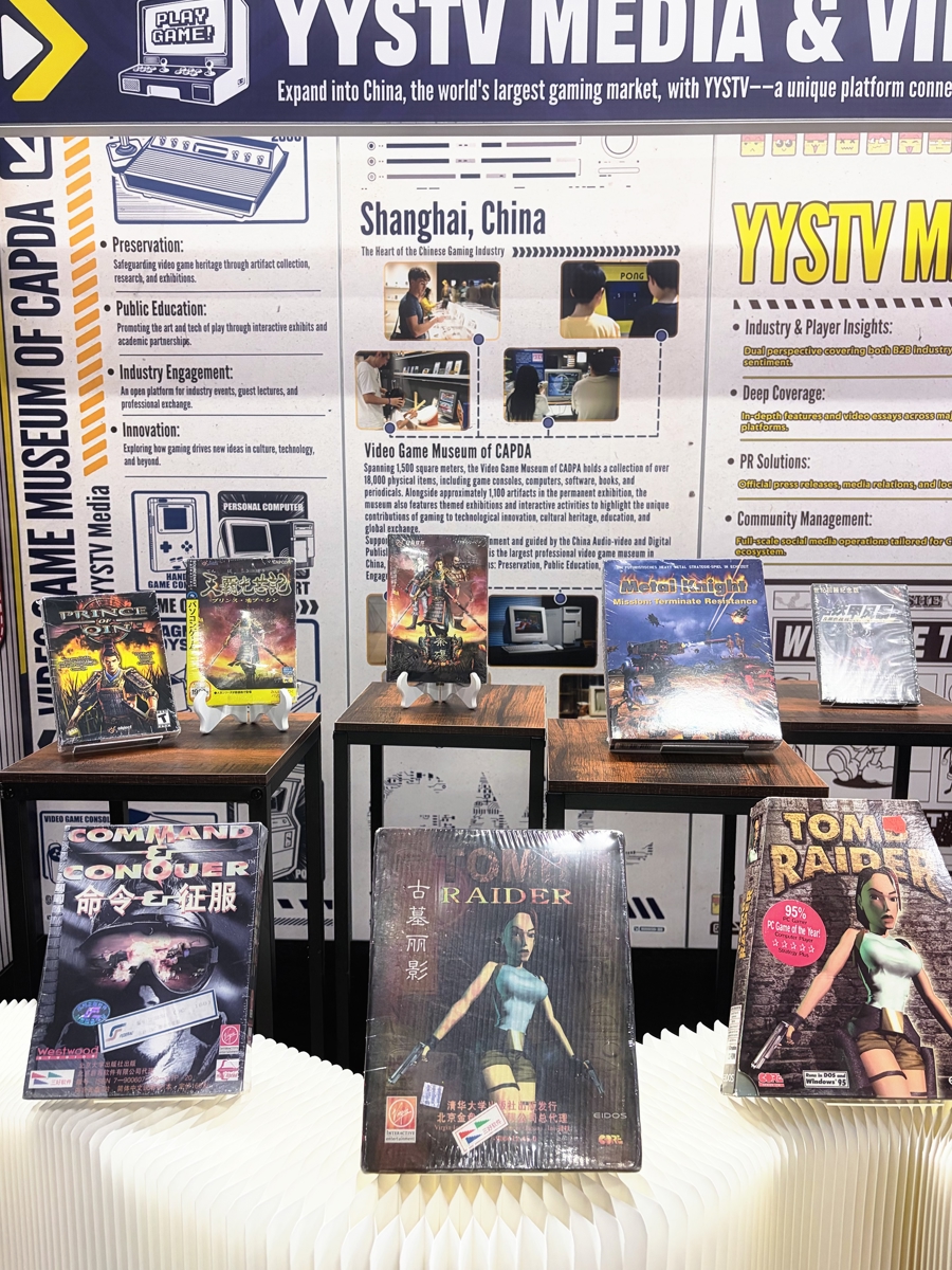 中国音数协游戏博物馆的展台前人头攒动,成为本次大会的热门打卡点。展台以“连接全球游戏产业与本土游戏文化”为核心,陈列了《秦殇》《铁甲风暴》等经典国产游戏实体,以及《古墓丽影》中文版等早期代理游戏藏品。展台上的大屏幕循环播放中国游戏发展历程影像,让海外参会者直观感受中国游戏的成长轨迹。“没想到童年玩的《铁甲风暴》竟然是中国制作!”一位资深海外玩家直言,此次参观刷新了对中国游戏的认知。不少近两年因《黑神话:悟空》初识中国游戏的年轻观众,通过博物馆展品读懂了中国游戏的深厚积淀。一些海外游戏从业者更是迫不及待要来上海,实地参观博物馆。展台还推介了今年7月将在沪举行的第二届中国国际游戏开发者大会(CIGDC),向全球同行发出热情邀约。